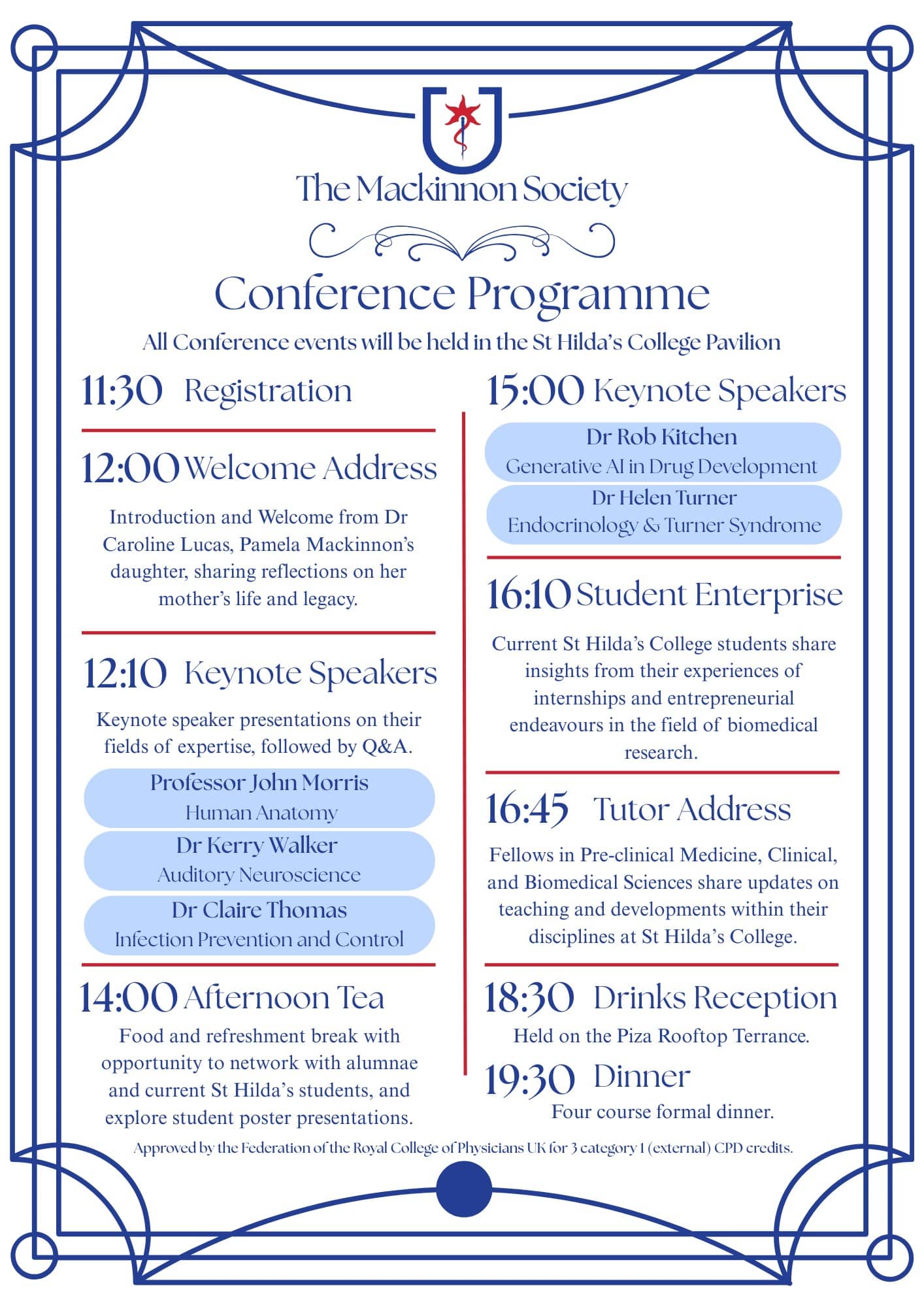 To celebrate the foundation of the Society, we will be holding the first Mackinnon Society Conference on Saturday 21 February 2026. The Conference will comprise an engaging day of keynote speakers from a variety of medical specialties and biomedical research fields, followed by a four-course formal dinner, with plenty of opportunities to reconnect with fellow medicine and biomedical sciences alumnae, and with our current student body.